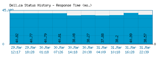 The above graph displays service status activity for Dell.ca over the last 10 automatic checks. The blue bar displays the response time, which is better when smaller. If no bar is displayed for a specific time it means that the service was down and the site was offline.