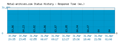The above graph displays service status activity for Metal-archives.com over the last 10 automatic checks. The blue bar displays the response time, which is better when smaller. If no bar is displayed for a specific time it means that the service was down and the site was offline.