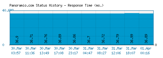 The above graph displays service status activity for Panoramio.com over the last 10 automatic checks. The blue bar displays the response time, which is better when smaller. If no bar is displayed for a specific time it means that the service was down and the site was offline.