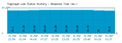 The above graph displays service status activity for Tcgplayer.com over the last 10 automatic checks. The blue bar displays the response time, which is better when smaller. If no bar is displayed for a specific time it means that the service was down and the site was offline.