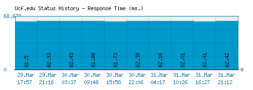 The above graph displays service status activity for Ucf.edu over the last 10 automatic checks. The blue bar displays the response time, which is better when smaller. If no bar is displayed for a specific time it means that the service was down and the site was offline.