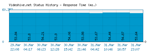 The above graph displays service status activity for Videohive.net over the last 10 automatic checks. The blue bar displays the response time, which is better when smaller. If no bar is displayed for a specific time it means that the service was down and the site was offline.