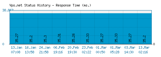The above graph displays service status activity for Vps.net over the last 10 automatic checks. The blue bar displays the response time, which is better when smaller. If no bar is displayed for a specific time it means that the service was down and the site was offline.
